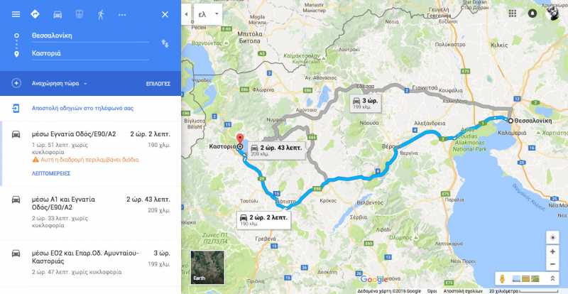 Η Διαδρομή είναι περίπου 2 ώρες. 190κμ